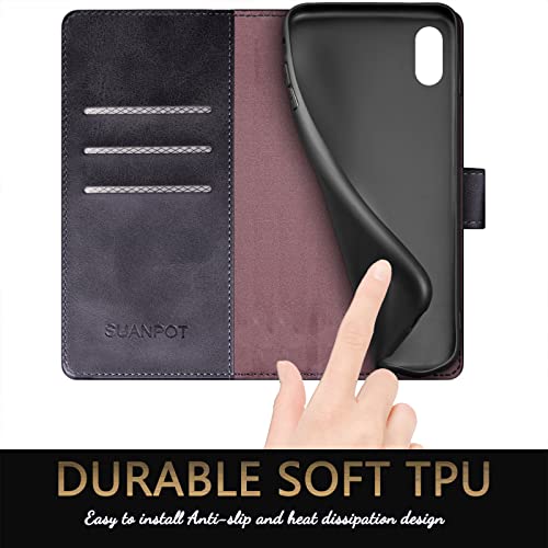 [La custodia a portafoglio progettata solo per iPhone X/XS]-Non adatta iPhone XS Max, se hai bisogno di un altro modello di custodia a portafoglio in pelle, fai clic su quella accanto al titolo [Visita il negozio SUANPOT]