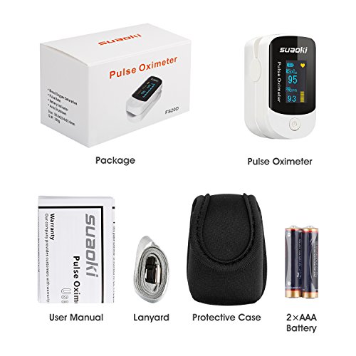 SUAOKI FS20D Pulsossimetro da Dito con Display OLED, per Misurazione di Frequenza del Polso (PR) e Saturazione di Ossigeno (SpO2), Batteria Custodia Inclusa