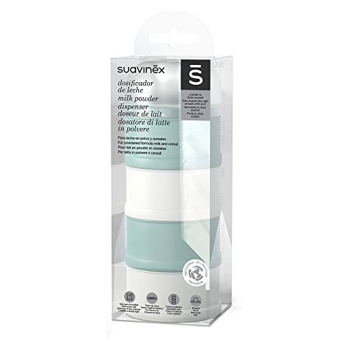 Suavinex Dosatore Latte in Polvere e Cereali. Con 4 scomparti, beccuccio e chiusura a vite. Lavabile in lavastoviglie. Bonhomia, Colore Verde