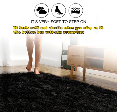 Subeen - Tappeto per camera da letto, morbido, per soggiorno, in pelliccia, decorazione per soggiorno, antiscivolo, morbido, tappeto moderno Shaggy, tappeto per la decorazione della casa (nero, 80 x
