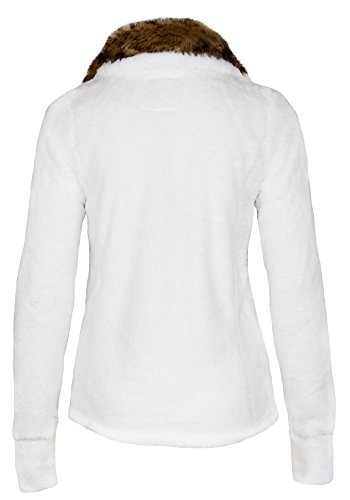 Sublevel Women's Polar Jacket with Fake Fur Collar And Bobble | Warm Sweater with Wide Collar, Größe:M, Farbe:White