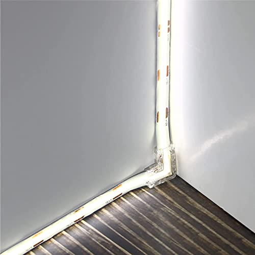 SUBOSI COB - Striscia LED bianca calda, angolo, 10 mm, 2 pin, 6 pezzi a forma di L, 2 connettori centrali trasparenti, per strisce LED da 10 mm, 5 V, 12 V, 24 V
