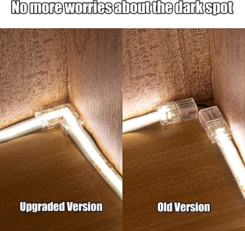 [Nuovo design] Il nostro connettore COB migliorato è diverso dal connettore angolare precedente. Il nuovo connettore angolare a forma di L non ha spazi vuoti, in modo che la striscia luminosa possa essere allungata e formi una linea luminosa completa senza macchie nere e spazi visibili. I nostri connettori sono molto piccoli e sottili e puoi estendere la striscia luminosa in ogni angolo