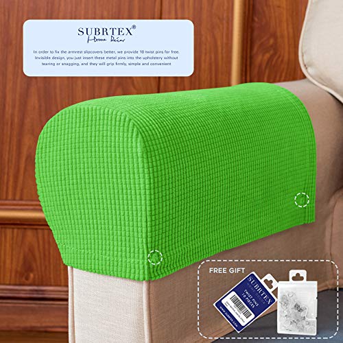 Subrtex Set di 2 copribraccioli in tessuto elasticizzato spandex antiscivolo per mobili e poltrone, per divano reclinabile, con strumenti di fissaggio gratuiti, perni elicoidali (verde erba)