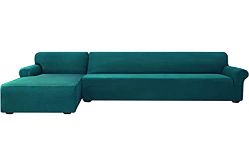 Subrtex Copridivano con Penisola Elasticizzato Copridivano Componibile per Divano a Forma di L (Sinistra 2 Posti, Blu Verde)