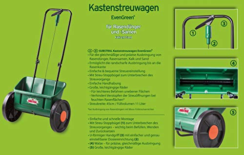 Substral Even Green Vibrazione diffusa Carrello, Carrello diffusa con Chiusure di Alta qualità, Grandi Ruote zum ausbringen di Fertilizzante, Semi e calcare