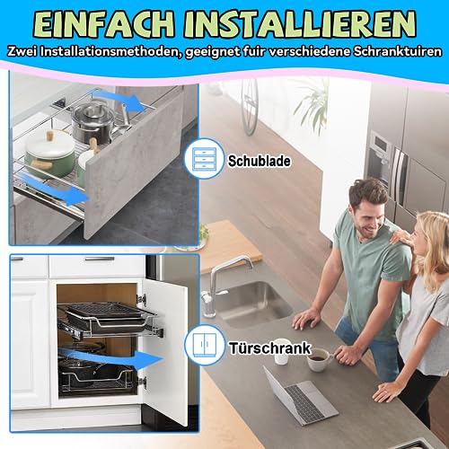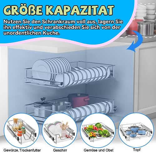 SUBTLETY Cassetto telescopico da cucina, organizer in metallo, cassetto da cucina, con guide di guida, estraibile, per armadietti da cucina di 30 cm di larghezza (4 pezzi)