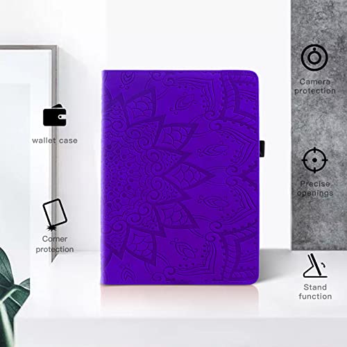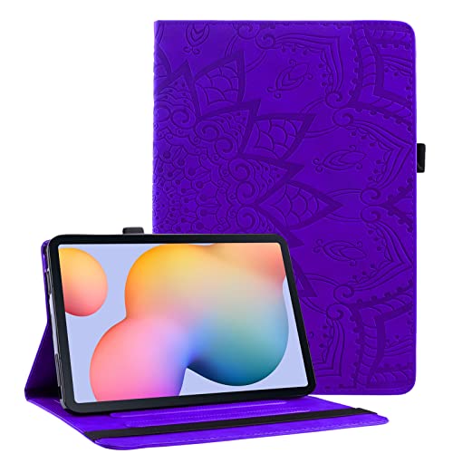 Succtop Custodia Galaxy Tab S6 Lite 10.4 Flip Portafoglio Custodia Cover Supporto Tablet Cover Case con Portapenne Samsung Galaxy Tab 6 Lite 2020 SM-P610/SM-P615 Mandala Flower Emboess Viola