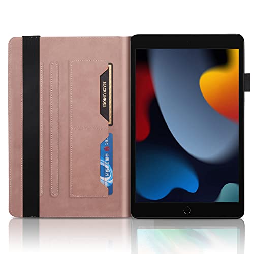 Succtopy Custodia iPad 10,2 Pollici, 2021/2020/2019 Modello, 9/8/7 Generazione Cover in Pelle PU Flip Stand Cover Portafoglio Porta Penna Slot Card Tablet Custodia iPad 9/8/7 10,2 Pollici - Oro Rosa