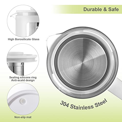 Materiale per uso alimentare: questa bollitore elettrico temperatura regolabile è realizzata in vetro borosilicato resistente ai graffi e al calore di alta qualità e acciaio inossidabile 304 per uso alimentare. Tutte le superfici a contatto con l'acqua sono realizzate con materiali per uso alimentare, resistenti al calore e 100% privi di BPA, a tutela della salute tua e della tua famiglia. Colla a doppio strato antiscottatura, buon effetto di isolamento termico, più sicuro da usare.