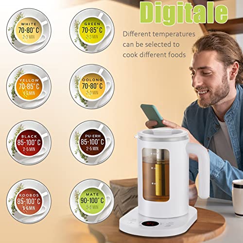 SUCIKORIO Bollitore Elettrico Temperatura Regolabile in Vetro, 1,5 litro Electric Kettle con Filtro per il tè | Base di rotazione a 360° | Protezione Contro le Ustioni a Secco | Senza BPA