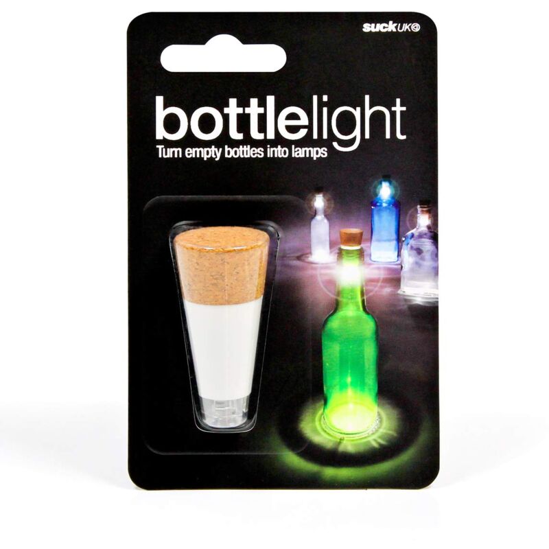 Descrizione Non buttate le vostre bottiglie vuote - trasformatele in lampade da cortesia o centrotavola con questa luce ricaricabile. Ideata a forma di tappo di sughero con Annessa luce LED ultra forte, la bottle light calza quasi tutti i tipi di collo di bottiglia e crea una luce ambiente da tavola unica, sia per interni che per esterni. Create bellissime decorazioni per le vostre feste utilizzando bottiglie colorate e con rifiniture vintage, altrimenti utilizzate le come alternativa PIU' Sicura alle candele. Potrete ricaricare la bottle light utilizzando qualunque caricatore USB. Quando in carica emana una luce rossa. Una volta caricata la luce durera' Fino a tre ore. Suck UK e' la compagnia di design che ha creato e prodotto la bottle light originale.