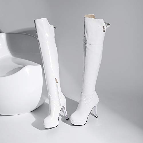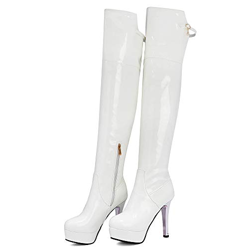 SUCREVEN Donna Plateau Sopra Il Ginocchio Boots Tacco Alto Sopra Il Ginocchio Boots Tacco A Spillo Moda Stivali Alti Bianco Numero 33 Eu