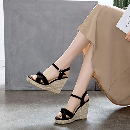 SUCREVEN Sandalo Espadrillas Donna Eleganti Zeppa Sandali Con Cinturino Alla Caviglia Tacco Alto Sandali Estate Festa Scarpe Nero Numero 44 EU/46CN