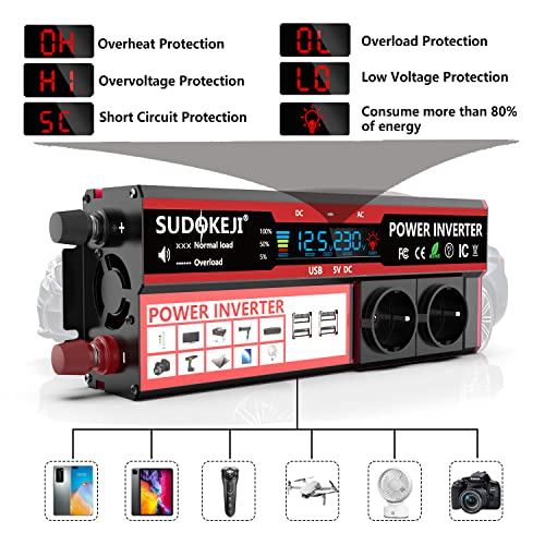 SUDOKEJI Inverter 12v 220v 1000W Inverter di Potenza Auto Invertitore di Potenza con 2 Presa AC 4 Porte USB 4.8A Power Inverter Trasformatore Auto