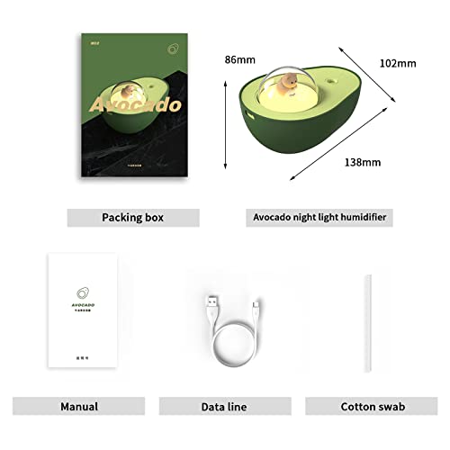 Suewidfay Umidificatore, Umidificatore A Nebbia Da 320 Ml, Umidificatore Silenzioso A Forma Di Avocado Con Luce Notturna, Umidificatore Da Tavolo, Per Viaggi In Ufficio In Camera Da Letto Per Bambini