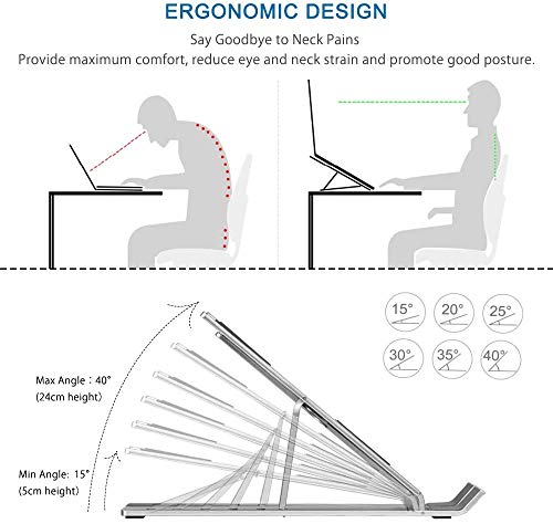 【Ampia compatibile】- Supporto regolabile per laptop per scrivania supporta laptop/notebook e tablet fino a 17". Compatibile con MacBook Air, ASUS, Jumper, Lenovo, HP, HUAWEI, Fusion5, Dell, Acer, Samsung Chromebook, Google Pixelbook