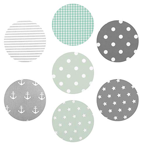 Sugarapple in Germania: tessuto di cotone per patchwork fai da te, 7 pezzi da 50 cm x 70 cm | totale 3,5 m x 70 cm | lavabile a 60 °C | Tessuto Mix Menta + Grigio Öko Tex Standard 100