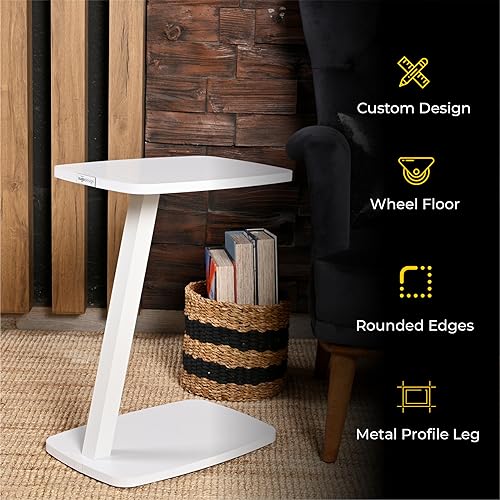 Sugodesign Dulcet - Tavolino da salotto con ruote, piccolo tavolino a forma di Z, elegante tavolino bianco a forma di Z - C come ripiano per divano e divano