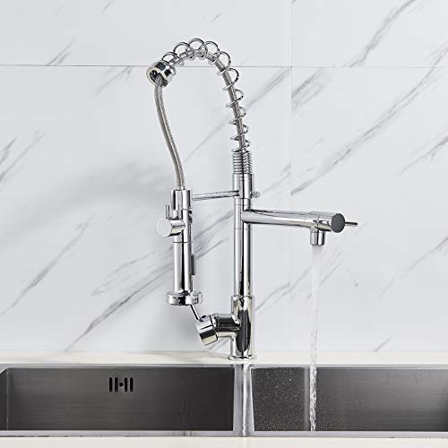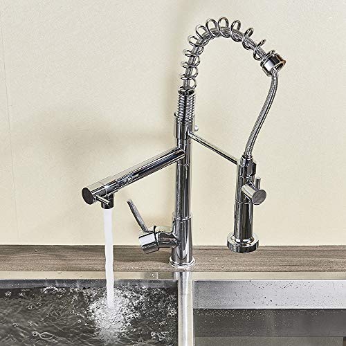 SUGU Rubinetto da cucina con doccetta, estraibile, cromato, miscelatore monocomando, per cucina e cucina, con angolo di rotazione a 360°, rubinetto monocomando regolabile, ugello per primavera