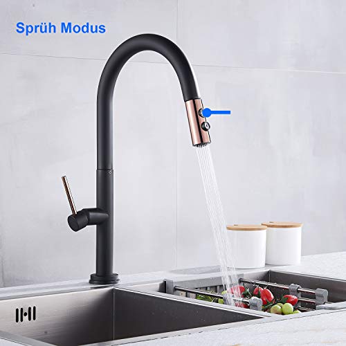 SUGU Rubinetto da cucina nero miscelatore per cucina a bassa pressione rubinetto monocomando rubinetto da cucina girevole a 360° rubinetto da cucina rubinetto miscelatore monoleva rubinetto lavello