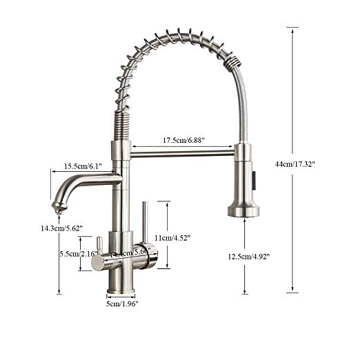 Suguword - Rubinetto da cucina per acqua potabile a 3 vie, in acciaio inox, girevole a 360°, con 2 maniglie, 3 in 1, miscelatore per filtro dell'acqua, rubinetto ad alta pressione per lavello cucina