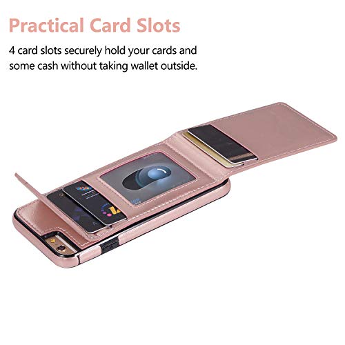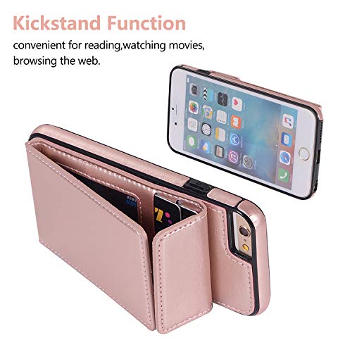 Suhctup Cover per iPhone 7 Plus/iPhone 8 Plus,Custodia Portafoglio in Pelle con 4 Slot per Titolare della Carta PU + TPU Silicone Morbida Antiurto Flip con Supporto e Chiusura Magnetica -Rosa