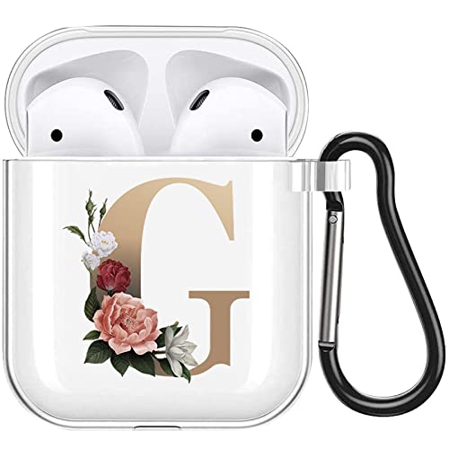 Suhctup Custodia Compatibile per AirPods 1&2, Trasparente TPU Morbido Silicone Cover con Alfabeto Inglese e Fiori - Antiurto Case per AirPods 1/2 Generazione con Moschettone Portachiavi, per Ragazze