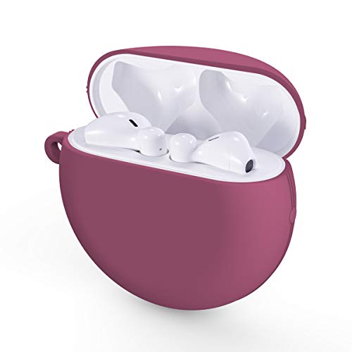 Suhctup Earphone Case Compatible with Huawei FreeBuds 3,Soft Silicone Skins Bluetooth Shockproof Protective Cover Accessories for Huawei FreeBuds 3 with Carabiner [Supports Wireless Charging] -Fuchsia