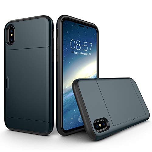 Suhctup Progettato per iPhone 7 Plus / 8 Plus Custodia Slide Armor Wallet Slot Card Holder Cover, capacità 2 Carte di Credito Ultra Resistente Portafoglio Anti Goccia Case - Blu Navy
