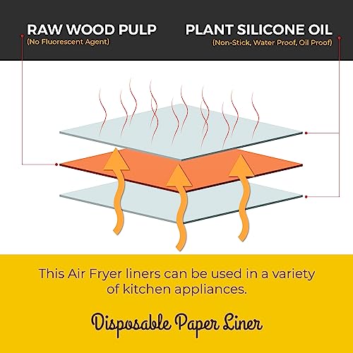 La confezione contiene: la confezione contiene una quantità sufficiente di 100 fogli di carta pergamena per friggitrice ad aria. Per le tue esigenze quotidiane di cottura, cottura e sostituzione, fornisci una scelta di soluzioni. Dopo aver utilizzato la carta per friggitrice ad aria, basta gettare il rivestimento di carta. Non è più necessario pulire la friggitrice.