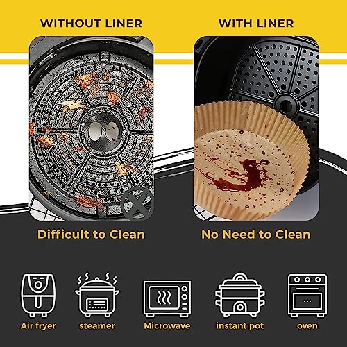 Suhsai 100 pezzi Fogli per friggitrice ad aria Contenitori per alimenti usa e getta Fogli di carta per forno a microonde - Carta da forno da 7,9 pollici Carta pergamena a prova di olio e acqua