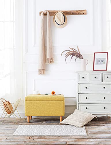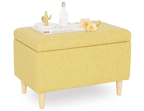 SUHU Pouf Poggiapiedi Contenitore Quadrato in Lino Panca Multifunzione Tessuto Puff Ottomana Letto Moderna Baule Cassapanca Imbottita Gambe in Legno da Ingresso Spogliatoio Interno Salotto Giallo