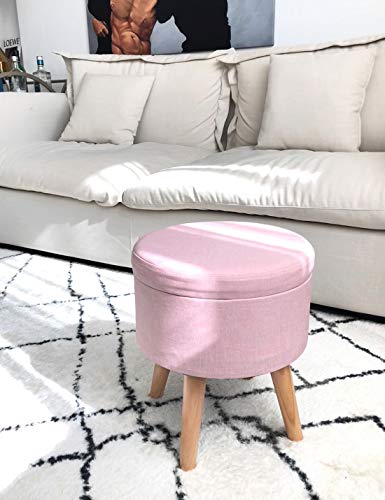 Suhu Pouf Puff Sgabello di Stoccaggio Poggiapiedi Cassapanca Contenitore Rotondo Moderno Basso Design Rosa Gambe in Legno Massello Rosa