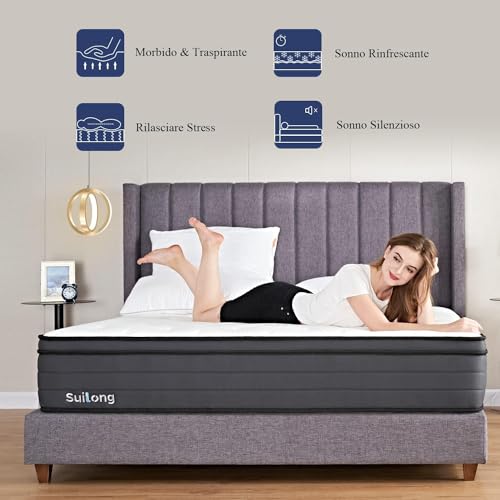 SuiLong Materasso Matrimoniale 140x200 Memory Foam Gel e Molle insacchettate, Materassi Letto 7 Zone per Ergonomia, Antiacaro, Antibatterico, Traspirante 3D Tessuto Morbido - Spedizione dall'Italia