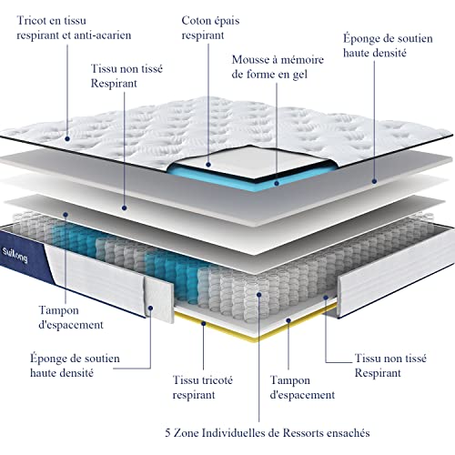 SuiLong Materasso Molle insacchettate Memory Foam in Gel Fresco, 5 Zone Ortopedico Ergonomico Antiacaro Antibatterico Traspirante Schiuma, Materassi Singolo 90x190 Altezza 25 cm in Scatola