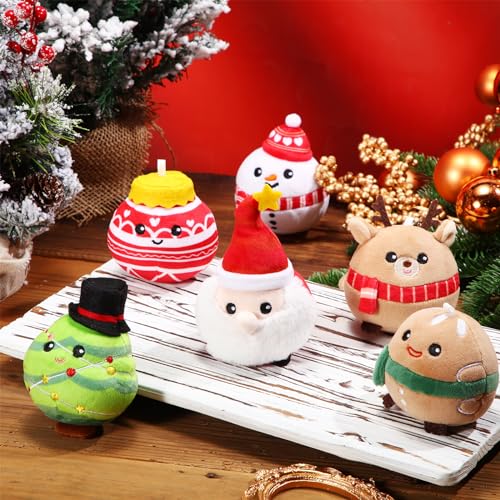 Suilung 6 Ornamenti di Peluche di Natale Decorazioni Natalizie a Forma di Pupazzo di Neve Alci Omino di Pan di Zenzero Palline e Albero di Natale da Appendere per Festa di Compleanno, 8 cm