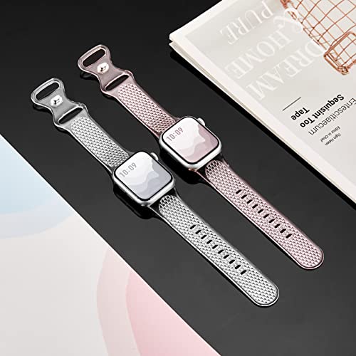 Suitisbest 2 cinturini compatibili con Apple Watch da 38 mm, 40 mm, 41 mm, in silicone con chiusura a pressione, per Apple Watch 9, 8, SE 7, 6, 5, 4, 3, 2, 1, trasparente/rosa trasparente