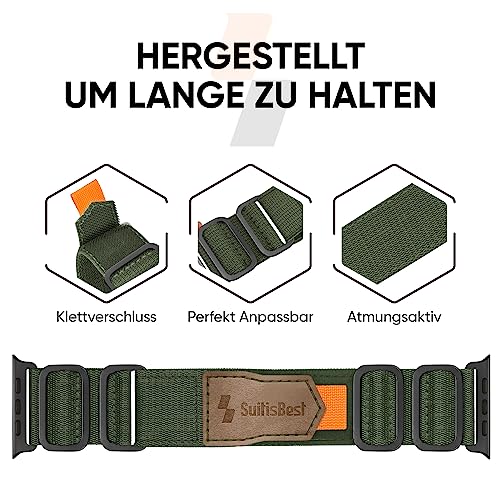 Suitisbest Cinturino compatibile con Apple Watch 49 mm, 45 mm, 44 mm, 42 mm, cinturino sportivo in nylon con chiusura in velcro per Apple Watch Ultra Series 8, SE 7, 6, 5, 4, 3, 2, 1, verde militare
