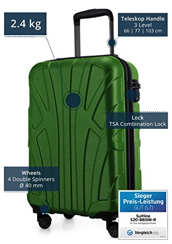SUITLINE - Valigia per cabina, bagaglio a mano rigido, 4 doppie ruote, TSA, 100% ABS opaco, 55 cm, 34 litri, Verde