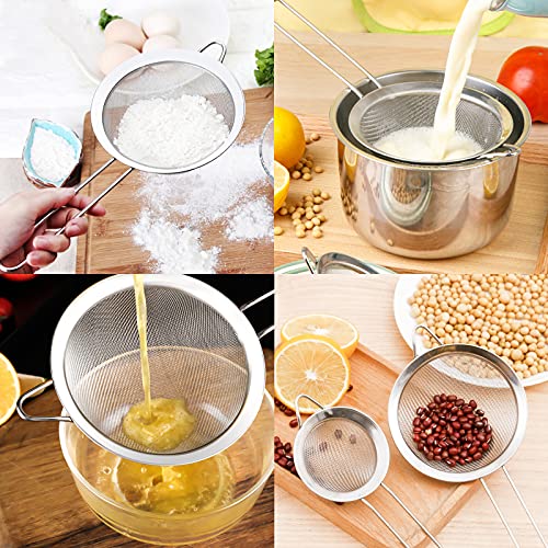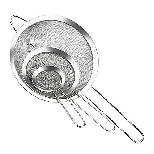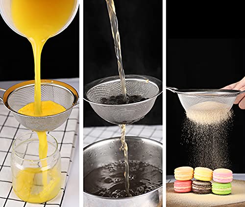 Suiwki 3 Pezzi 7/12/18 cm Setaccio Colino Acciaio Inox Setaccio a maglia fine Colino Scolapasta in Acciaio Inox a Maglia fine con Maniglia da Cucina per Pasta Riso Verdura albume