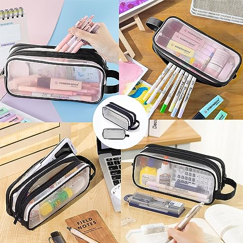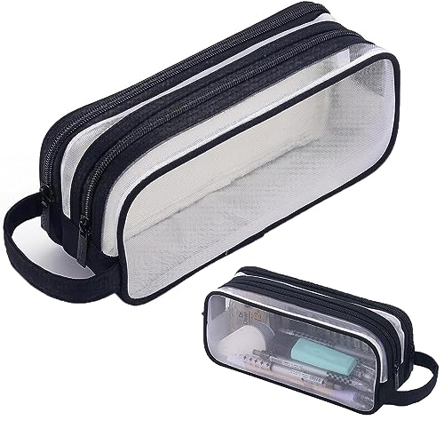 SUJAHHUJIQ Astuccio a rete trasparente, grande astuccio per penne a 2 scomparti, portapenne trasparente, multiuso, con tracolla portatile, per viaggi, ufficio, università