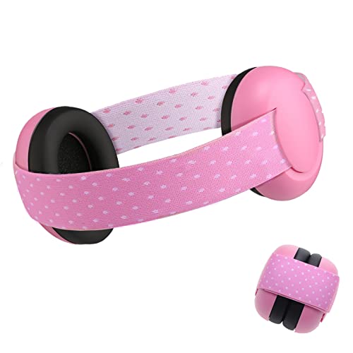SUJAHHUJIQ Protezione dell'udito del bambino Paraorecchie per eliminare il rumore elastico regolabile per dormire tranquillo e prevenire potenziali danni all'udito (meno di 24 mesi di utilizzo), rosa
