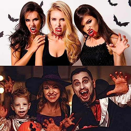 Ampia applicazione: le zanne da vampiro sono adatte per feste a tema Halloween, spettacoli teatrali o occasioni horror, e possono essere utilizzate come vampiri, lupi mannari, zombi e accessori per giochi di ruolo. Questo sembra piuttosto bello a una festa di Halloween. Può essere utilizzato anche come regalo di Halloween per amici, parenti.