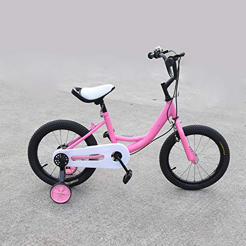 Sujrtuj Bicicletta da 16 pollici, unisex, per bambini, con tecnologia a doppio freno, colore giallo/rosa/verde (rosa)