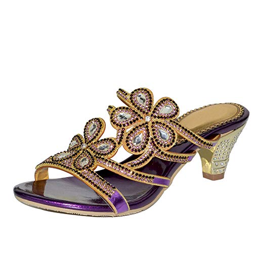 SUKDO Tacco Fine Sandali con Tacco Alto, Infradito Donna Sandali da Donna con Tacco Basso e Gioiello da Sera. Sandali Infradito con Infradito,Viola,43EU