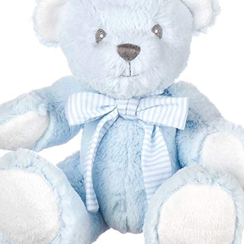 Suki Baby Hug-A-Boo 10082 - Piccolo Orsacchiotto di Peluche, 17.8 Cm, Azzurro con Fiocco di Cotone A Righe E Sonaglio nella Pancia.