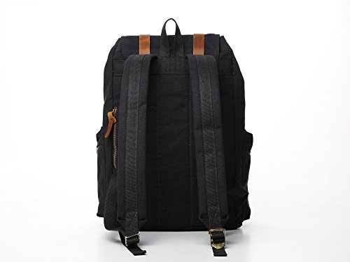 Sulandy @ multi-function vintage canvas Leather hiking Travel Military zaino per uomini e donne verde kaki Nero Black11 large (black)