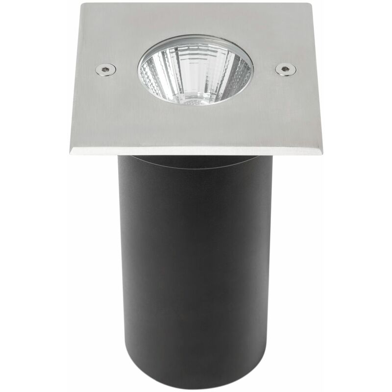 Faretto quadrato da incasso in alluminio AISI36 in finitura inox. Progettato con il nuovo sistema COB LED ad alta potenza ed efficienza luminosa. Particolarmente applicabile per esterni, corridoi, passerelle, strade, ecc. per il suo alto grado di protezione IP67. Fascio di luce diretto verso l'alto, creando un'illuminazione di luce calda. Driver incluso all'interno del dispositivo, funzionante direttamente a AC220V. Ciò semplifica l'installazione non richiedendo spazio aggiuntivo per il driver. Supporta fino a 1800 kg. Serve un sistema di drenaggio. Luce bianca calda (3000K) di 910lm. Dimensioni: 9,5 x 9,5 x 13,3 cm