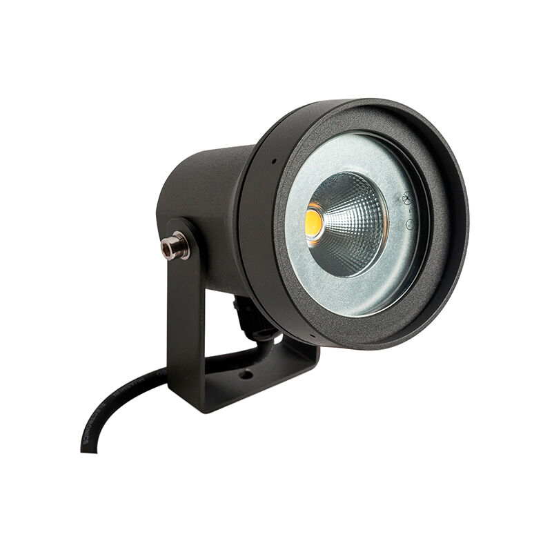 Picchetto da giardino in alluminio con un alto livello di protezione contro l'umidità/acqua: IP65. LED che proietta una luce bianca calda (3000K) di 550lm nella direzione desiderata. Dimensioni: 9,5 x 11 x 17,5 cm